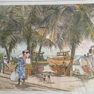 Jill Walker's print Oistinis Barbados with palm trees 16" x 12"