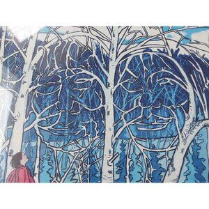 Logan has cleverly drawn the tree branched to depict the faces of two elders watching over the walking child.