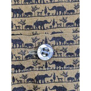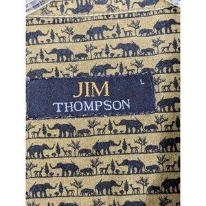Jim Thompson Mens L Button Up Shirt Dark Olive Green Elephant Print Cotton