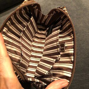 Jimeale New York Zippered Cosmetic/Make Up Bag in Striped Brown + Cream Sateen Fabric, 3 Interior Pouches, NWOT