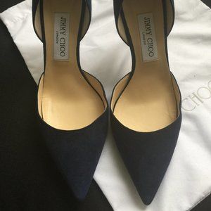 Beautifully designed Jimmy Choo Navy Suede Pointy Toe Pumps. Sure to be a classic, absolutely gorgeous addition to any wardrobe.
