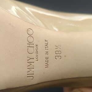 Jimmy Choo Alex Platform in Glossy Nude Beige Patent Leather Pump Heel 38.5 EU