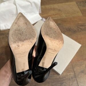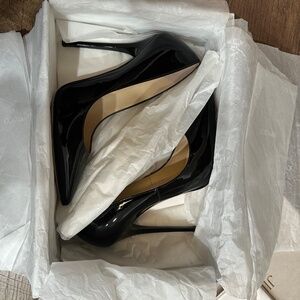 Jimmy Choo black glossy leather, 120mm stiletto. Size 37 EUR / 6.5 US. Worn a few times. Minor scuffs at the back (see pictures). Box and dust bag.