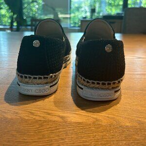 Jimmy Choo Black Cubed Suede Dawn Slip On Espadrille