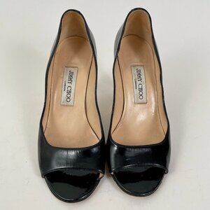 Jimmy Choo Black Patent Leather Peeptoe Pumps With Gold Detail, Size 37 (7)