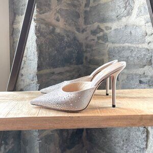 Jimmy Choo Crystal Embellished Satin Rav 100 Heeled Mules