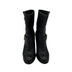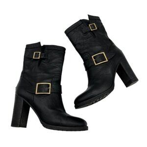 Jimmy Choo Dart Biker Buckle Black Leather Combat Boot Women Size 37.5