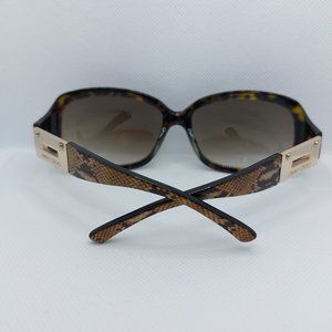 Check out this Jimmy Choo Essie/S Black Gradient Lens Tortoise Framed Sunglasses in great pre-owned condition, with minor wear on the lens and some wear on the frame-nose pad and the hardware on the temples.