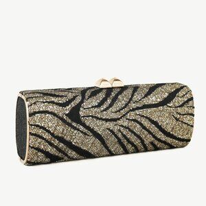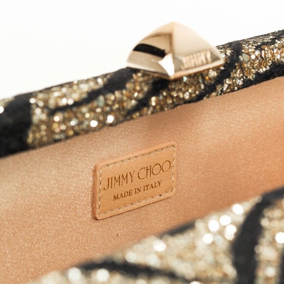 Jimmy Choo Gold & Black Glitter Zebra Stud-Clasp Clutch