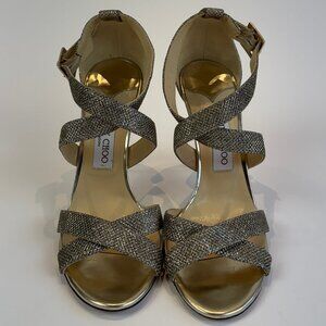 Jimmy Choo Gold/Light Bronze Glitter Sandals, EU 41