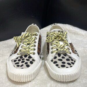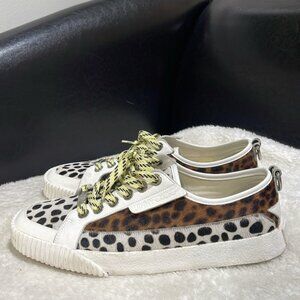 Constructed from leopard-print and zebra-print calf hair panels, these low-top sneakers bring a wild flair. Leopard and polka dot print hair calf low top sneakers featuring rear metal D-ring.