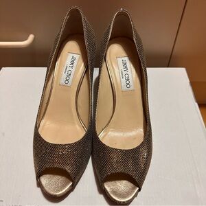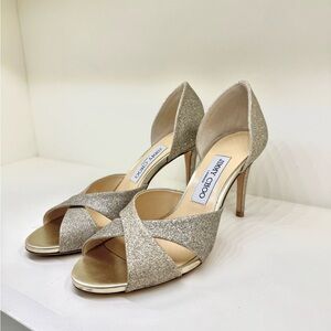 Jimmy Choo Isabel Glitter metallic peep toe pump heels – Size 37.5