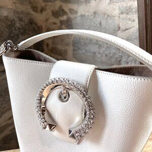 Jimmy Choo Ivory Leather Crystal Embellished Madeline Bucket Bag