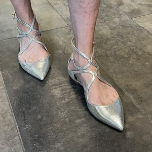 Jimmy Choo Lancer Flat in Silver Glittered Leather