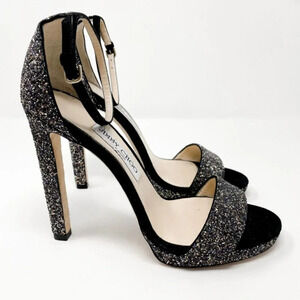 Jimmy Choo Leather Misty 120 Twilight Black Suede Glitter Sandals Heels 38.5/8.5