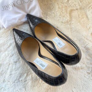 Jimmy Choo Love 85 Gray Croc Embossed Pointed Toe Pumps Size 36