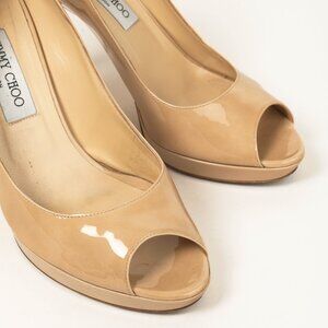 Jimmy Choo Luna Nude Patent Peep-Toe Heels
