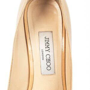 Jimmy Choo Luna Tan Patent-Leather Peep-Toe Platform Pumps