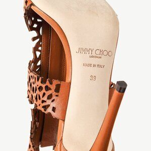 Jimmy Choo Megan 100 Laser-Cut Heels in Canyon Brown Leather