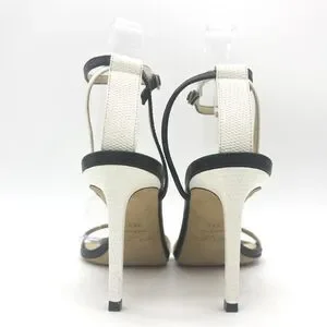 This is an authentic pair of JIMMY CHOO Lizard Embossed Minny 85mm Ankle Strap Sandals, size 38.5, in Black and White. These ultra chic heels are crafted of black and white lizard embossed leather. They feature a 85mm stiletto heel and adjustable ankle straps.