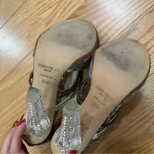 Jimmy Choo Multi Color Python and Lizard Cyndi Lucite Rhinestone Heels