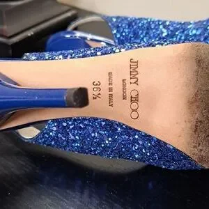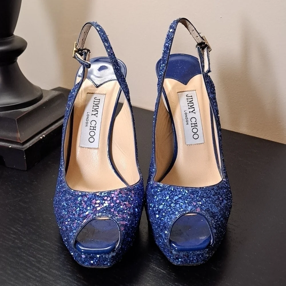 Jimmy Choo Open Toe Glitter Shoes 12cm lift Size 36.5