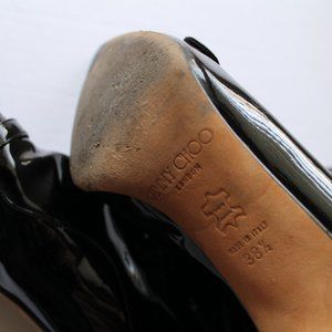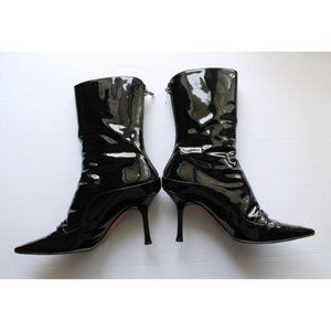 Jimmy Choo Patent Leather Front Strap Detail Ankle Boots Black Size 38.5