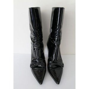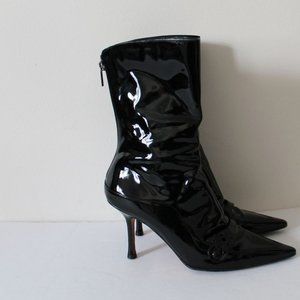 Jimmy Choo Patent Leather Front Strap Detail Ankle Boots Black Size 38.5