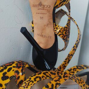 Jimmy Choo Patent Leather Leopard Print Shoes - Size 38 (US 7.5)