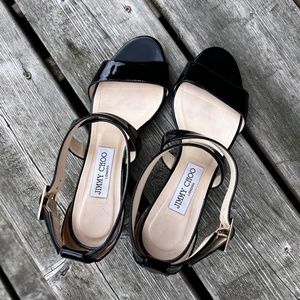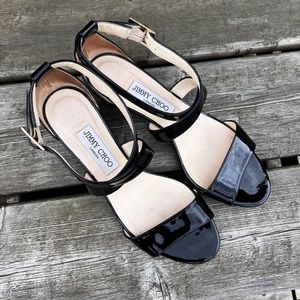 Jimmy Choo Patent-Leather Low Wedge Sandals