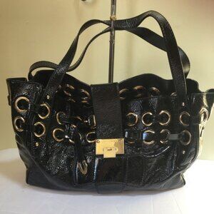 Jimmy Choo Ramona Leather Patent Shoulder Bag Tote Satchel Logo Pockets Black Lg