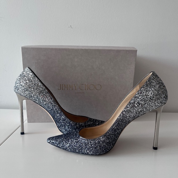 Jimmy Choo Romy 100 Heel in blue/silver gradient, size 40 (size 9)