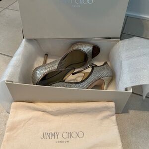 Jimmy Choo Tahiti shoes, Mary Jane with open toes. Heels height 4 inches. With box and shoes bag.