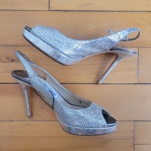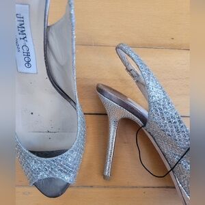 Jimmy Choo Silver Peep-Toe Slingback Heels