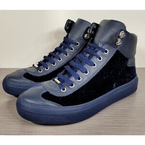 Jimmy Choo Velvet & Leather High-Top Sneaker, Navy, Mens Size 9 / 42