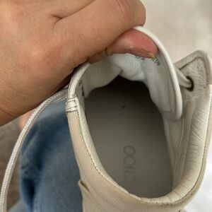 Step out in style with these chic white high-top sneakers. Perfect for casual outings, these shoes offer both comfort and fashion.