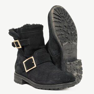 Jimmy Choo Youth Black Suede Buckled Moto Ankle Boots