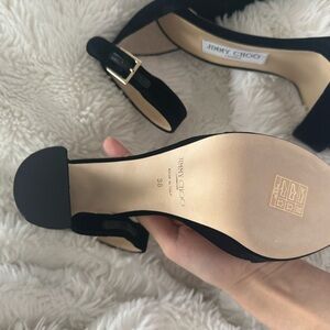 Step out in style with these elegant black heels from Jimmy Choo. Perfect for any occasion, these shoes offer both comfort and sophistication.