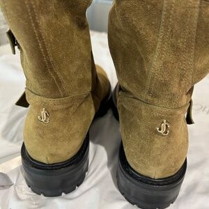 Brand New! Jimmy Choo olive green suede moto ankle boots. Women’s Size 8. Never been worn. Gold hardware. Purchases in Saks 5th Avenue, Manhattan