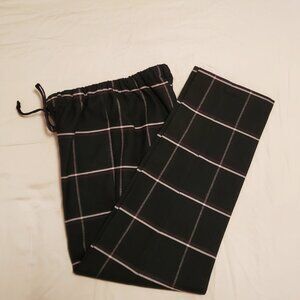 High-quality, mid-rise trousers with an elastic waist, inseam pockets and softly creased legs. Very comfortable black flannel with a windowpane plaid pattern (see photos). Luxurious feel: professional enough for work, comfortable enough for home. New condition – I bought these in two different sizes, and this pair hasn’t been worn (I love the pair in my size)! Offers welcome, bundles encouraged.