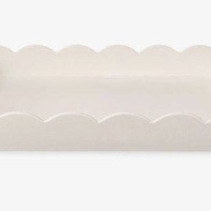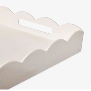 JF x Jillian Harris x Life at Home™ Collection. Rectangular, white serving tray with two handles and scalloped sides, made with a blend of bamboo fibre & melamine.