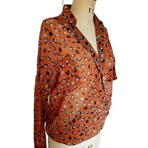 JoJo cute bird print sheer wrap tunic top shirt blouse women's size M