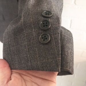 Pad shoulders, 2 tortoise buttons on the front, 3 on the wrist