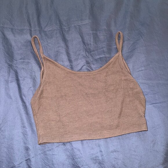 Joah Brown Cropped Low Back Tank Top XS/S Brown Ribbed Scoop Neck