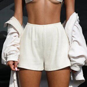 Relaxed fit shorts with a ribbed elastic waistband. Made with ultra soft plush rib material that's breathable and multi-seasonal.