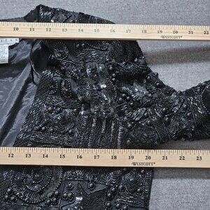 Joan Leslie Talbots Jacket Womens L Petite Black Top Sequins Beads Silk LS Vtg