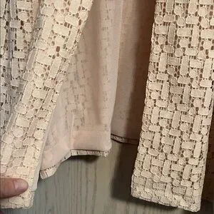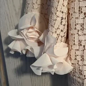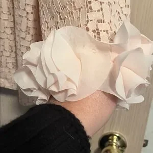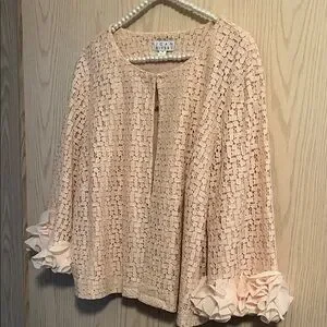 Chic blush top with a unique textured pattern. Features stylish ruffle cuffs.This is is fully opened and it is fastened at top only. Super cute
