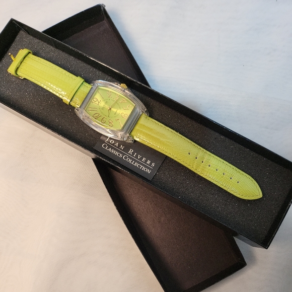 New without tags, old stock Joan Rivers watch. Classic analog green watch with green face and gold numbers and arms. Will require new battery