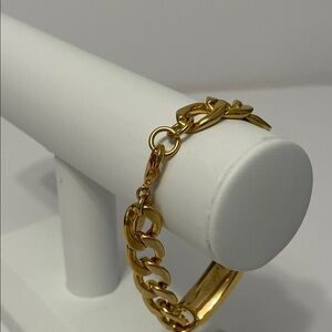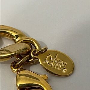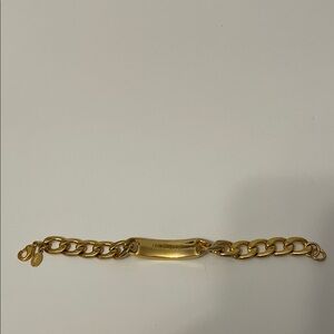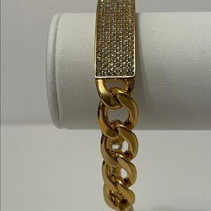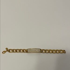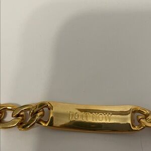 Joan Rivers stunning gold tone chainlink ID bracelet. The bracelet measures 7” in length and the crystal encrusted bar measures at 1/2” W x 1 1/2” L. The bar also has a motivational message on the back that reads” DO IT NOW”. NWOT