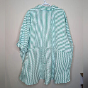 Joan Rivers Green & White Striped Gauze Textured 3/4 Sleeve Light Weight Top 5X